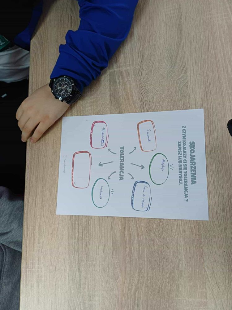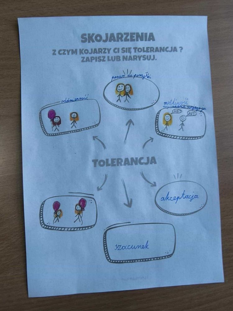 Międzynarodowy Dzień Tolerancji w naszej szkole 16 listopada to Międzynarodowy Dzień Tolerancji, z tej okazji psycholog i pedagog specjalny przygotowali dla uczniów działania, których celem było promowanie szacunku, empatii i otwartości na różnorodność. Zajęcia z uczniami obejmowały rozmowy o akceptacji, współpracy i reagowaniu na wykluczenie. Podczas zajęć wykorzystaliśmy filmik edukacyjny, karty pracy, które pomogły uczniom: – zrozumieć, czym jest tolerancja; – zastanowić się nad własnymi postawami; – wspólnie wypracować sposoby budowania przyjaznej atmosfery w klasie; -współpracować w grupie; -pracować nad komunikacją interpersonalną. Karty pracy stały się inspiracją do ciekawych dyskusji i ćwiczeń w parach. Dziękujemy wszystkim za aktywny udział! Razem tworzymy szkołę, w której każdy jest ważny, widziany i akceptowany .