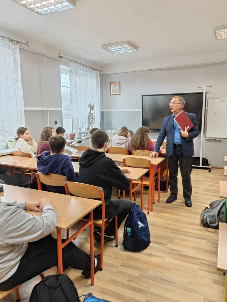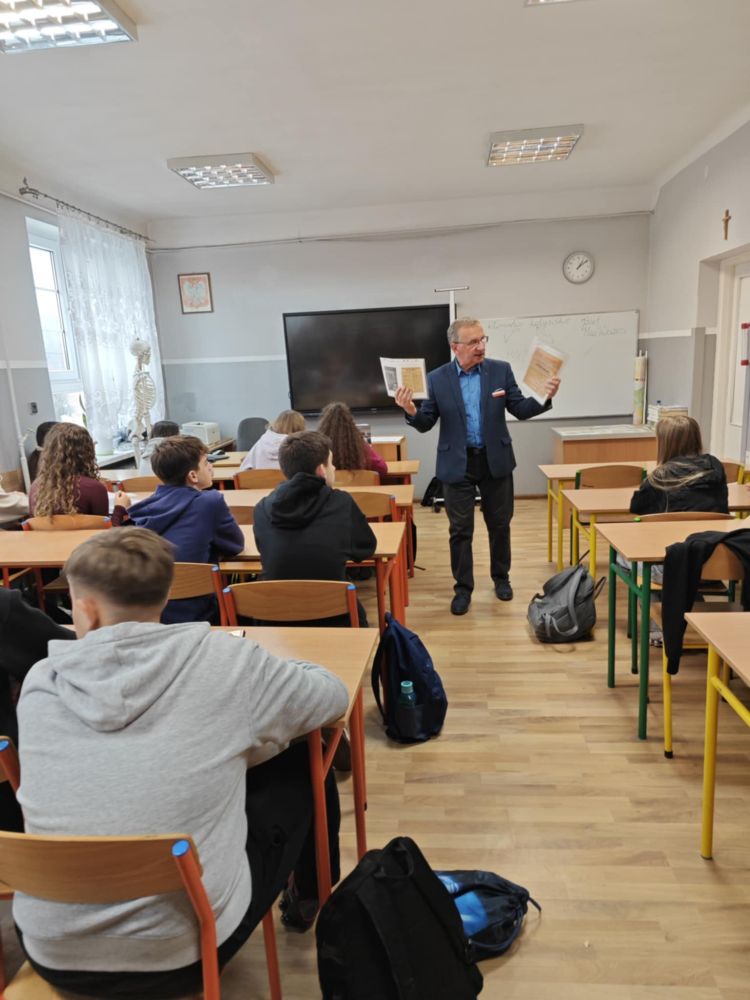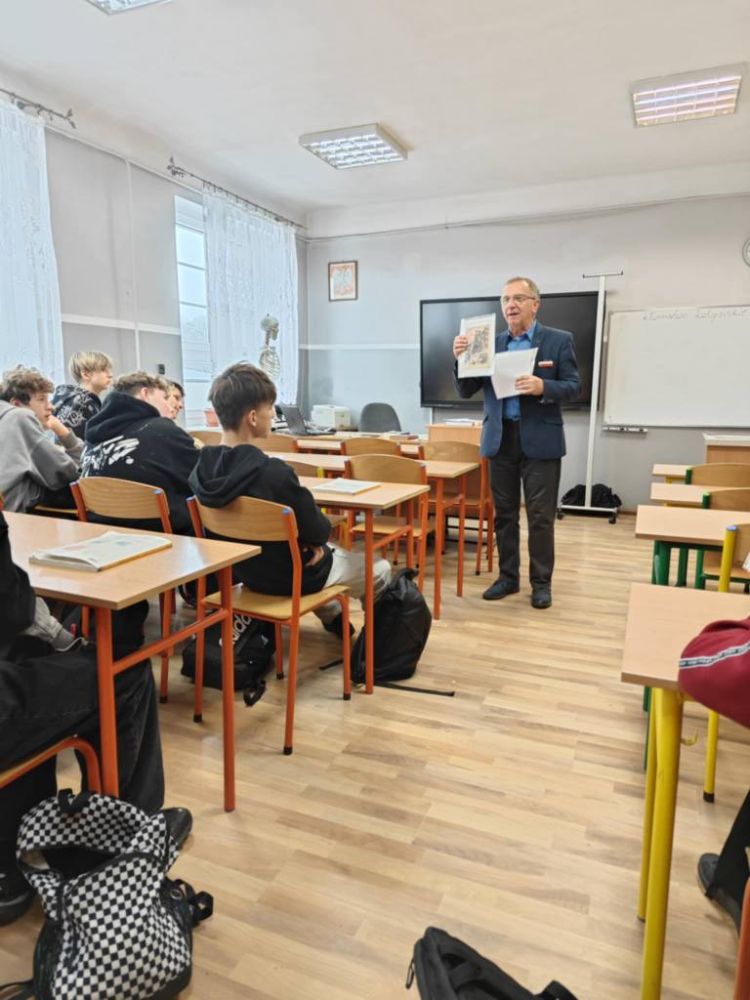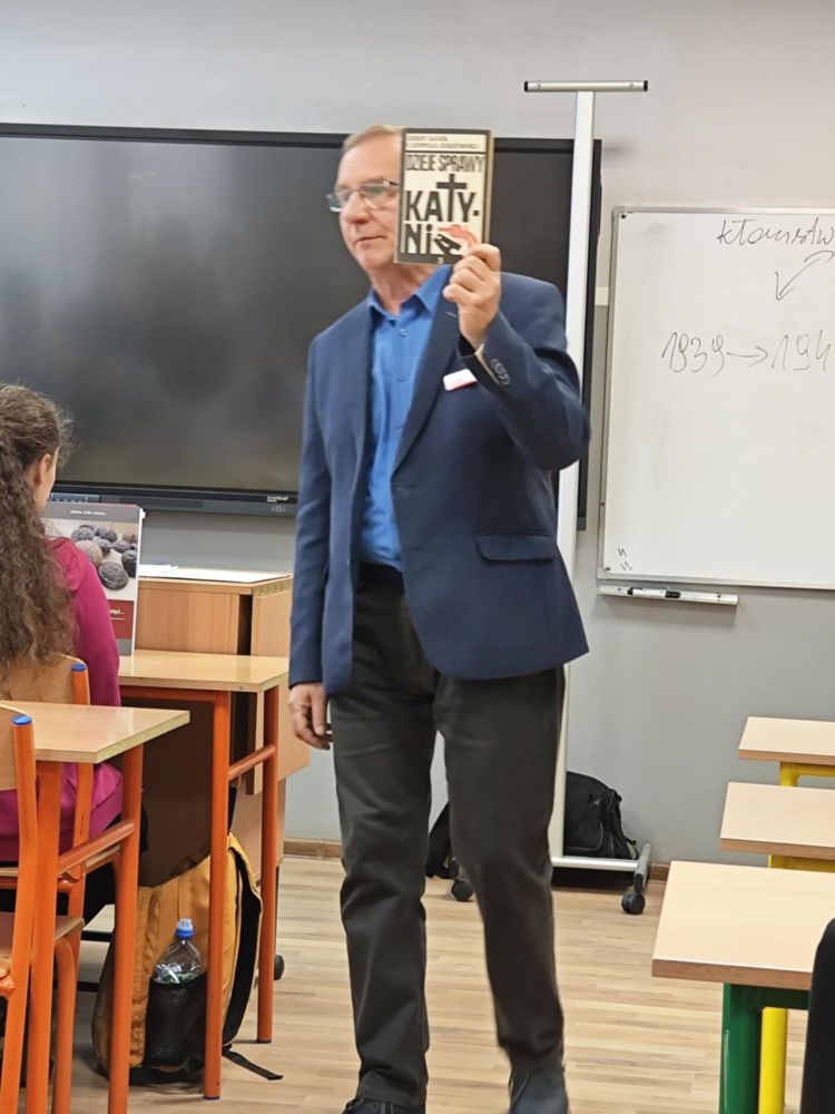 24 listopada uczniowie klas ósmych w ciekawy sposób pogłębiali swoją wiedzę historyczną. Tego dnia gościem na lekcjach historii był pan Janusz Czapiewski, wieloletni nauczyciel historii w SP5 oraz LO w Lipnie, a także członek Federacji Rodzin Katyńskich. Powodem zaproszenia pana Czapiewskiego na zajęcia jest właśnie jego członkostwo w Stowarzyszeniu "Rodziny Katyńskie", którego celem jest upamiętnienie ofiar zbrodni dokonanej na polskich żołnierzach oraz przedstawicielach innych służb przedwojennej Rzeczypospolitej przez sowieckie NKWD. Pan Janusz opowiadał ósmoklasistom o tym, jak doszło do zbrodni na Polakach, wśród których był także członek jego rodziny oraz co kryje się pod wyrażeniem "kłamstwo katyńskie". Pan Czapiewski posiłkował się przy tym licznymi materiałami Instytutu Pamięci Narodowej oraz przykładami literatury, która ukazała się na omawiany temat. Pan Janusz wskazał na znaczenie upamiętnienia ofiar zbrodni katyńskiej i miejsc, w których Polacy byli przetrzymywani i mordowani. Mówił, że takie miejsca, jak Katyń, Kozielsk, Starobielsk, Ostaszków, Bykownia czy Charków nigdy przez Polaków nie powinny być zapomniane. Uczniowie z zainteresowaniem wysłuchali prelekcji. Dziękujemy bardzo za ciekawe spotkanie.