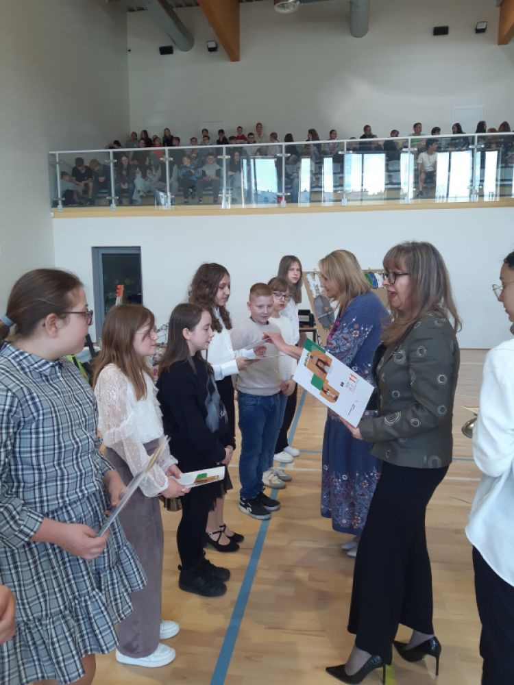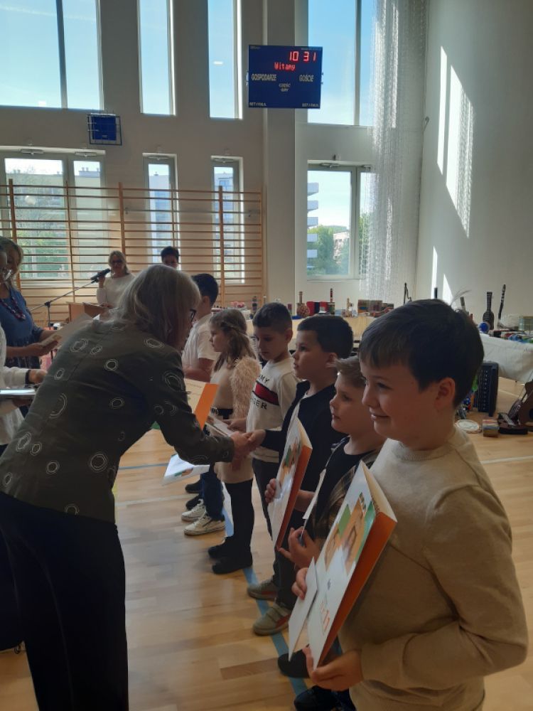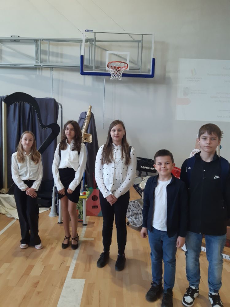 Uczniowie naszej szkoły uczestniczyli w Wojewódzkim Plastycznym Konkursie Ekologicznym zorganizowanym przez Szkołę Podstawową nr 11 w Toruniu pod honorowym patronatem Kuratora Oświaty w Bydgoszczy i Prezydenta miasta Torunia. Hasło przewodnie konkursu "Mniej odpadów - czyste środowisko". Uczniowie mieli do wykonania z surowców wtórnych dowolny instrument muzyczny. Do organizatorów napłynęło ponad 120 prac z 12 szkół naszego województwa. Z naszej szkoły uczniowie wykonali 11 prac z czego komisja konkursowa nagrodziła sześciu uczniów. 25 kwietnia pojechaliśmy do Torunia na uroczystość wręczenia nagród. Wyróżnienia za swoje prace otrzmali: Szymon Zalewski z klasy IIa i Karolina Kwiatkowska z klasy VIb. Nagrodzeni zostały również Oliwia Rybczyńska z klasy Va, Maria Cymerman z klasy VIb, Jakub Wenderlich z klasy VIb, Alan Ciechanowski z klasy VIa. Gratulujemy