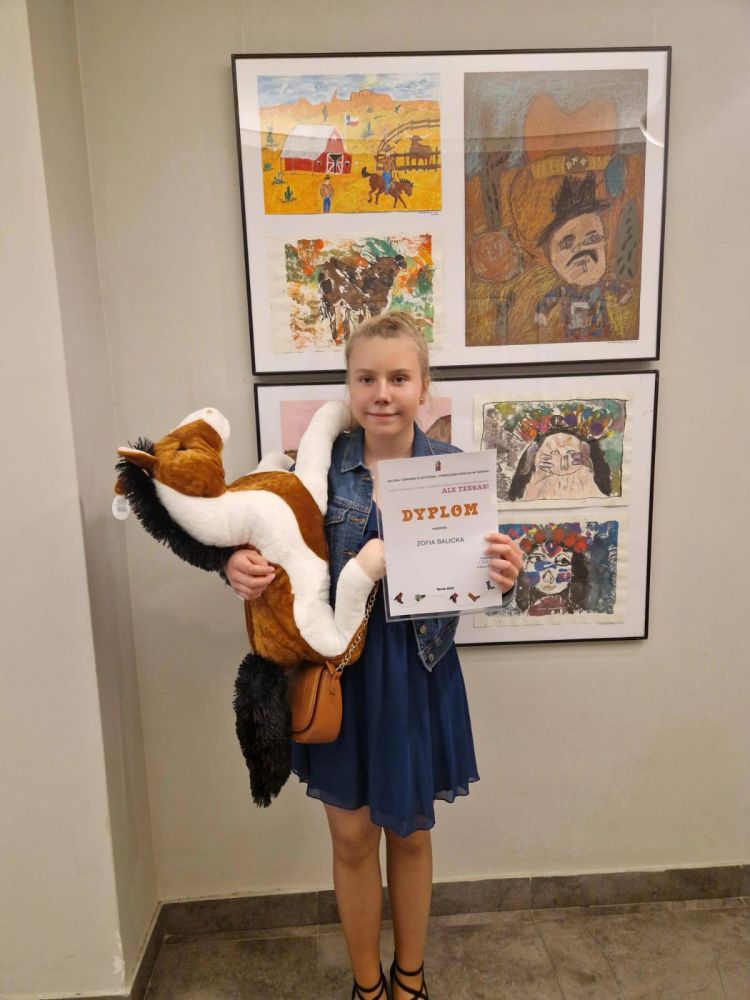 Uczennice klasy Va : Zofia Balicka, Natalia Borkowska, Ksenia Malinowska, Natalia Pawłowska, Julia Plisińska, Oliwia Rybczyńska wzięły udział w Regionalnym Konkursie Plastycznym dla Dzieci i Młodzieży " Ale Teksas". Patronat nad konkursem sprawował Marszałek województwa Piotr Całbecki Z 806 nadesłanych prac, nagrodę otrzymała uczennica naszej szkoły Zofia Balicka. W uroczystości w dniu 04.06.2025 roku uczestniczyli marszałek województwa Piotr Całbecki, wicemarszałek Zbigniew Ostrowski i profesor Jim Mazurkiewicz, który od lat działa aktywnie na rzecz promocji naszego regionu w USA. Serdecznie gratulujemy laureatce konkursu.