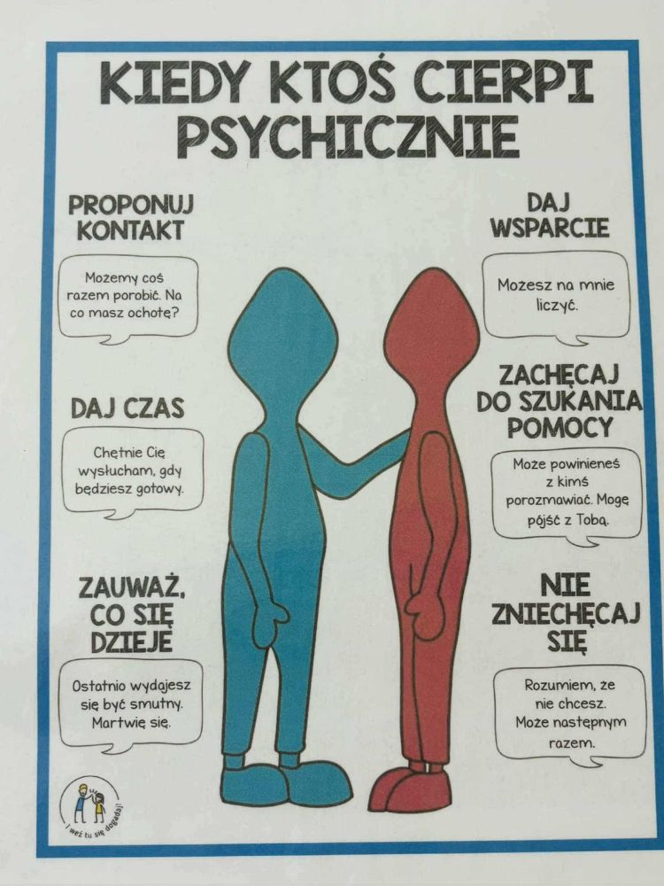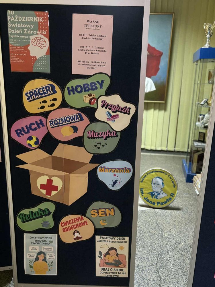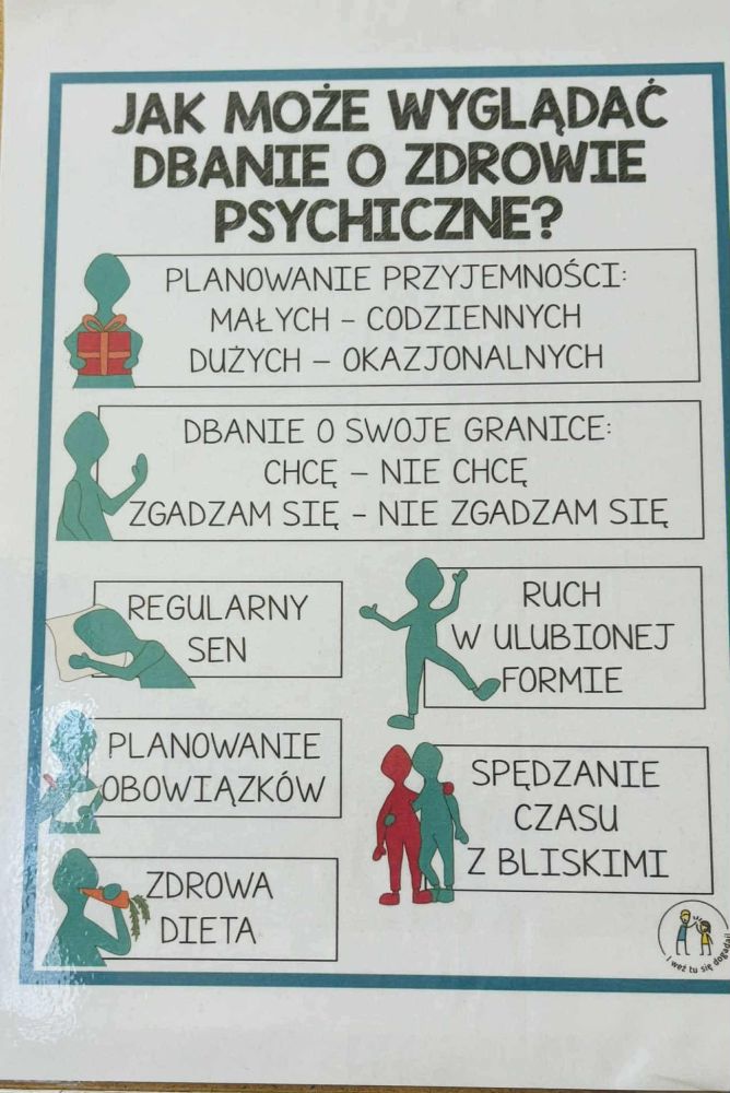 Światowy Dzień Zdrowia Psychicznego w naszej szkole! 10 października obchodzimy Światowy Dzień Zdrowia Psychicznego – to wyjątkowa okazja, by zatrzymać się na chwilę i porozmawiać o tym, jak ważne jest dbanie o siebie – nie tylko o ciało, ale też o umysł i emocje. Z tej okazji w naszej szkole, nasza szkolna pani psycholog, przygotowała dla nas gazetę psychoedukacyjną oraz quiz dla młodzieży podnoszący świadomość zdrowia psychicznego. Tego dnia w sposób szczególny podczas zajęć grupowych i indywidualnych z szkolnym psychologiem rozmawiano: o emocjach i stresie; poznaliśmy sposoby radzenia sobie z trudnymi sytuacjami; uczyliśmy się, jak wspierać innych i kiedy prosić o pomoc oraz jak zadbać o swoje zdrowie psychiczne. Pamiętajmy – zdrowie psychiczne to nie temat tabu. Wspólnie tworzymy szkołę, w której każdy może czuć się bezpiecznie, zrozumiany i ważny.
